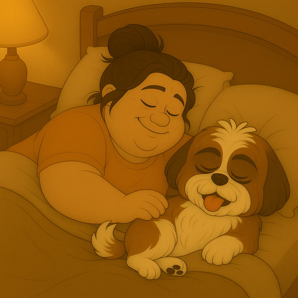 PS from Oishi: “After Susan’s full-on telenovela performance 🎭, we curled up in bed 🛏️ and slept like emotionally exhausted champions 🐶💤. Good night and sweet dreams 🌙✨.”