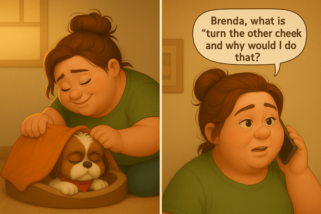“Hey Brenda… what does it mean to ‘turn the other cheek’? And, uh, do I really have to?”