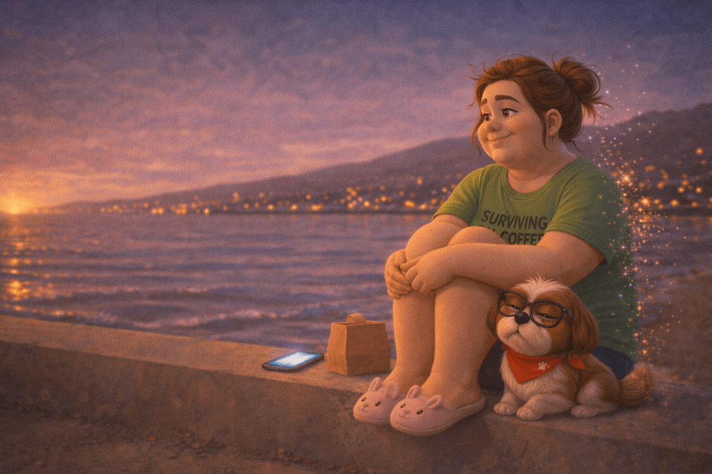 “Second… you’re not actually alone. You have your friends. Your family. Badoodle. Real humans and one very judgmental Shih Tzu with a heartbeat. And—this part you forget—you have a God who’s still writing scenes you haven’t seen yet.”