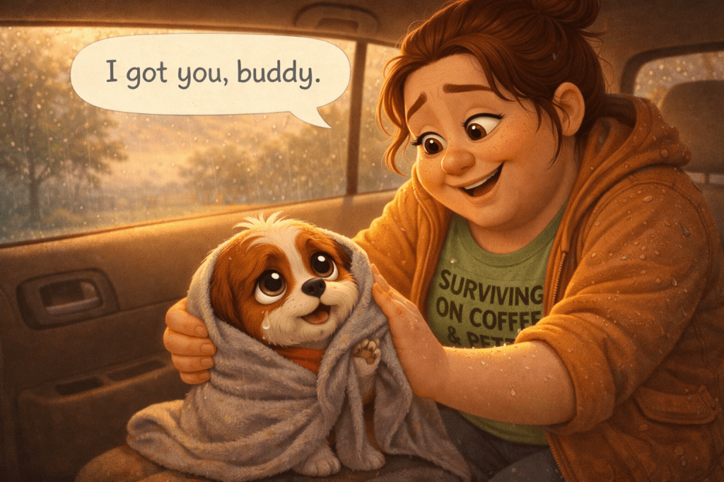 But instead of grabbing me, she opened an umbrella. She dried me. She scooped me up like I weighed nothing.