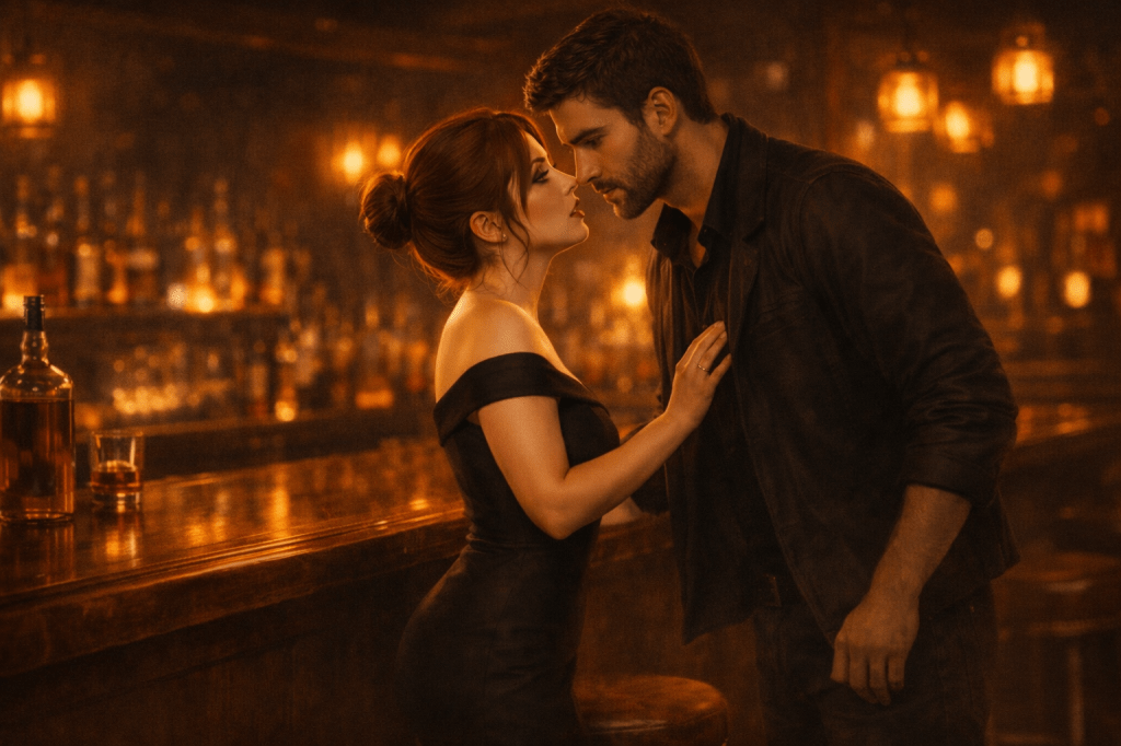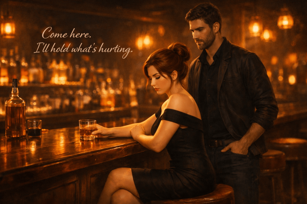 I was seated at a bar beneath dim amber lights, staring at the whiskey in my glass, wearing a black dress that made me look elegant, expensive, and tragically unavailable.
