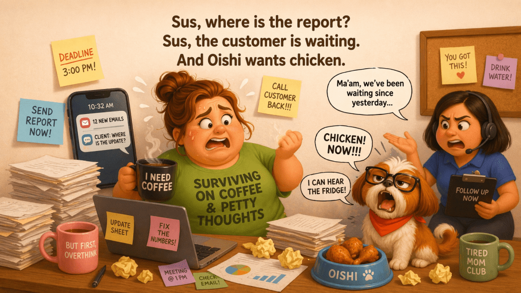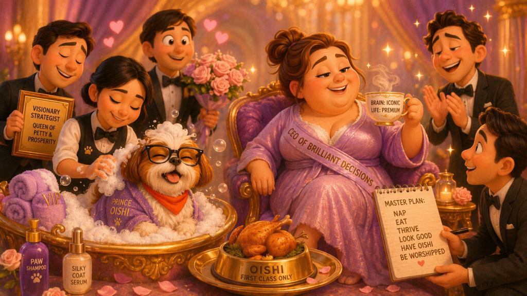 Then there is Oishi badoodle, barking like he personally funded the grocery run, because apparently His Royal Fluffiness is waiting for chicken and refuses to eat kibble like a commoner.