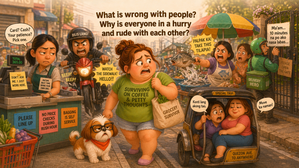 During grocery hour, the cashier looked at me like I had interrupted her villain story. I thought, she must be tired.