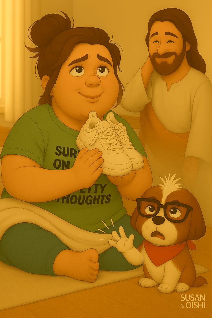 I was about to post this on the fridge like a manifesto, when Anghelito and Angelusito appeared. My personal heavenly CCTV duo. I sighed, sat down, and mumbled, “Alright, here comes the unsolicited divine coaching.” Oishi barked like he was in on it.