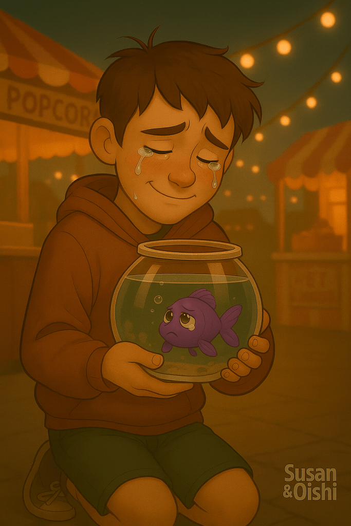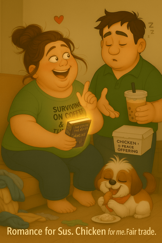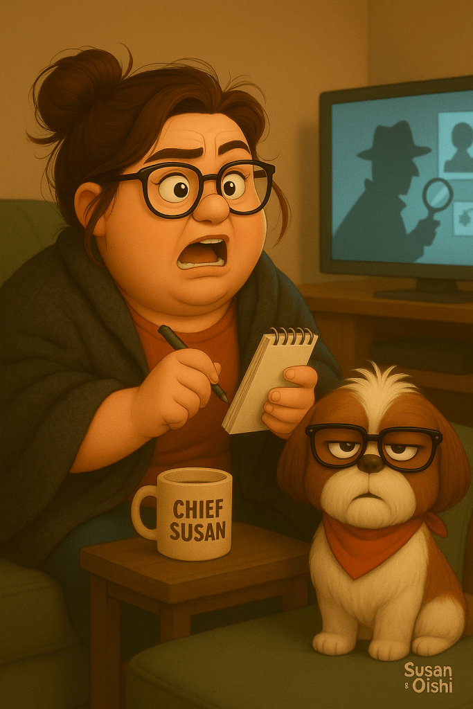 Susan wiped her tears. We made her hot cocoa. Oishi curled beside her like a weighted blanket with legs. We tucked her in.